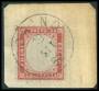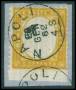 1862. 80 c. gul utakket forneden på klip uden garanti. AFA 14000,-