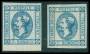 1863. 15 c. blå tp. I i 2 stk. tilretningstryk.