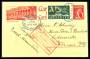 1923. Luftpost, 15 Centimes, rød/oliven med flere. Postkort sendt med særflyvningen Brugg - Yverdon 17. Februar 1927. Transitstemplet YVERDON 17.FÉVRIER 1927 og ankomststemplet FEUERTHALEN 18.II.27.