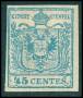 LOMBARDIET-VENETIEN. 1850. 45 c. blå uden lim forfalskning fra Album De Facimiles med officielle forfalskninger udgivet af Philatelist Unionen i Geneve i 1928 i et oplag på kun 500 stk.