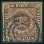 1851. 4 RBS pl. I-89 Ferslew med blåt stp. Attest CAM.