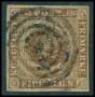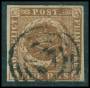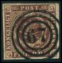 1854. 4 RBS nøddebrun. Attest Grønlund.
