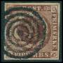 1852. 4 RBS rødbrun pl. I-25 pragt stp.