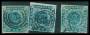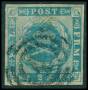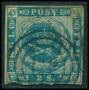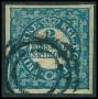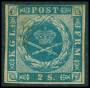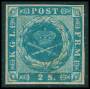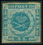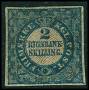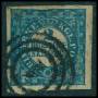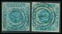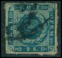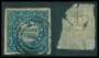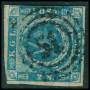 1854. 2 sk. blå; 2 mærker, der begge er annulleret med nr.stpl. 1. AFA 1200,-