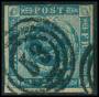 1854. 2 sk. blå med klichefejl i nø-trekant.
