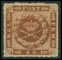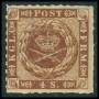 1863. 4 sk. brun med meget sjælden nr. stp. 183: Glücksburg.
