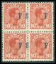 1917. 10 øre rød i 4-blok (3 postfriske) med forskudt overtryk. Attest Kaiser.