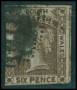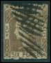 NEW SOUTH WALES. 1852. 6 d. vandyke-brown, et lille indhak i syd og i højre side. SG. 275 £