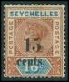 SEYCHELLES. 1893. 15 c./16 c. prov. med dobbelt overtryk. SG 700 £