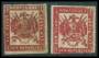TRANSVAAL. 1870. 1 p. brunkarmin. 2 stk. uden lim. Mi. 280 €