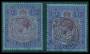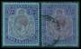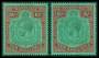 BERMUDA. 1924. 12/6 sh. Georg V i par med variant: Break in scroll samt sjældent skibspost stp. "Hamburg-Amerika linie Deutschland".