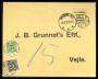1928. Ufrankeret forsendelse (Kan nedlægges ufrankeret i Postbrevkassen) sendt fra FRØSLEV (stjernestempel) via NYKJØBING JYLL 30.3.28 til Vejle. Sat i efterporto med 15 øre og annulleret VEJLE 31.3.2...
