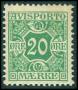 1914. 1 kr. blågrøn/rød. AFA 4600,-