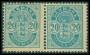 1884. 20 øre blå i par med små og store hjørnetal.