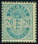 1884. 20 øre blå med pragt Esrom type Mern.