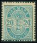 1895. 20 øre blå med brun plet på bagsiden. AFA 650,-