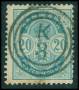 1884. 20 øre blå med N2 stp.