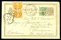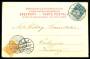 1905. 1 øre orange i par og 5 øre grøn på opfrankeret 3 øre brevkort sendt til Br. Guyana.