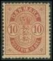 1884-95. 10 øre rød med variant: Streg til venstre for skjoldet. AFA 1150,-