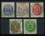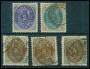 1871-74. 2 sk. grå/ultramarin - 16 sk. grå/grøn; planche med 5 mærker. AFA 3530,-