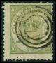 1864. 16 sk. oliven med variant: Ujævn ovallinie over G. AFA 1800,-