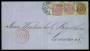 1870. 3 sk. grå/purpurlilla i par og 8 sk. grå/brun på brev til London.