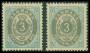 1875. 3 øre blå/grå x 2. AFA 700,-