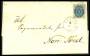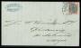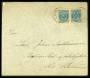 1875. 5 øre rød/blå tryk 2 single på brev til Norge. Attest LN.