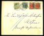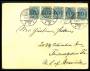 1895. Tofarvet 4 Øre, grå/blå, 5-stribe på brev fra Kjøbenhavn F, 7.6.1901 til USA. Ankomststemplet 19, JUN.
