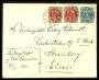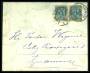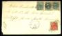 1875. 4 øre grå/blå x 3og 8 øre grå/rød på brev til USA, småfejl.