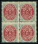 1875. 8 øre lysgrå/rød i sammenholdt 4-blok.