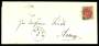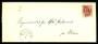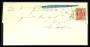 1875. Tofarvet, 8 Øre, grø/rød (3-stribe). Rekommanderet brev sendt fra BÆLUM 12.4. til Veddum pr. Hadsund. Annulleret med nummerstempel 129. Påtegnet "Pr. Express", som igen er overstreget, og rettet...