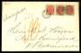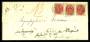 1875. Tofarvet, 8 Øre, grå/rød (3-stribe), tr. XIXa B 4-6 på rekommanderet brev sendt fra Randers, 25.10.1880 til Nørre Holmegaard pr. Bekmarksbro.