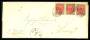 1875. Tofarvet, 8 Øre, 8. Tryk, Position A98-100 (3-stribe). EXPRESBREV sendt fra BÆLUM 25.7. til Aalborg. Påskrevet "Pr. Expresse". Annulleret med nummerstempel 129. Ankomststemplet AALBORG 25.7.