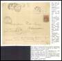 1875. Tofarvet, 8 Øre, 14. Tryk. Brev/Postanvisning på 99,70 kr. sendt fra HOBRO 29.8. til Nørgaard pr. Bælum. Annulleret med nummerstempel 130. Postanvisning er overstreget, da det ikke var lovligt a...