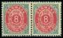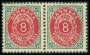1895. 8 øre grå/rød tryk 98 pos. B81-82 i par med ret og omv. rm. venstre mærke er postfrisk. Udtalelse LN.