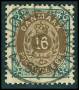 1875. 16 øre grå/brun med ovalfejl: Plet i ovalbåndet.