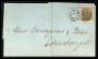 1875. Tofarvet, 20 Øre, 1. Tryk. Brev sendt fra HELSINGØR 18.9.(1876) til Nystad i Finland. Annulleret med nummerstempel 24. Transitstemplet ST.PETERSBORG 11.SEP.1876 og ankomststemplet ANK 26.9.