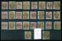 1875. 20 øre rød/grå x 6 tryk og pos. bestemte perlefejl, alle med fejl.