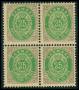 1875. 25 øre grå/grøn tryk 4 pos. 1-2/11-12 i 4-blok med ovalfejl. Attest Jørgensen.