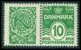 REKLAME. 5 øre grøn og 10 øre brun, Chr. X og Bølgelinie, Galle & Jessen (et mærke med brune pletter). AFA 480,-