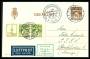 REKLAME. Galle & Jessen (røde bogstaver) & 5 Øre, grøn. Helsagsbrevkort sendt med nat-luftpost fra KØBENHAVN 25.6.31 til Stockholm.