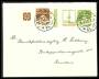REKLAME. Galle & Jessen (røde bogstaver) & 5 Øre, grøn samt Børnenes Kontor & 5 Øre, grøn. Brev sendt lokalt i KØBENHAVN 9.5.34.