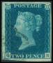 1855-57. 2 d. blå pl. 5 pg 6 i par, begge med minus hjørne. SG. (34-35) (løse) 280 £