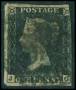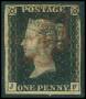 1840. 1 d. sort J-F med rødt stp. defekt i nø-hjørne.