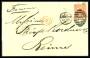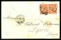 1865. 4 d. teglrød pl. 9 i par på brev til Frankrig.