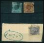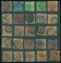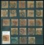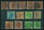 Planche med diverse skillingsmærker i blandet kvalitet.