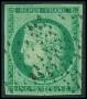 1849. 15 c. grøn let beklippet på 2 sider på brev, mindre rift i højre side af brevet. Yvert (single på brev). 1800 €
