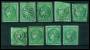 1870. 5 c. grøn. 9 stk. med småfejl. AFA 13500,-