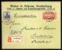 1920. Fællesudgave, 10 Mark, rød og Germania, 15 Pfennig, violet. Blandingsfrankering på rekommanderet brev sendt lokalt i SONDERBURG 26.1.20.